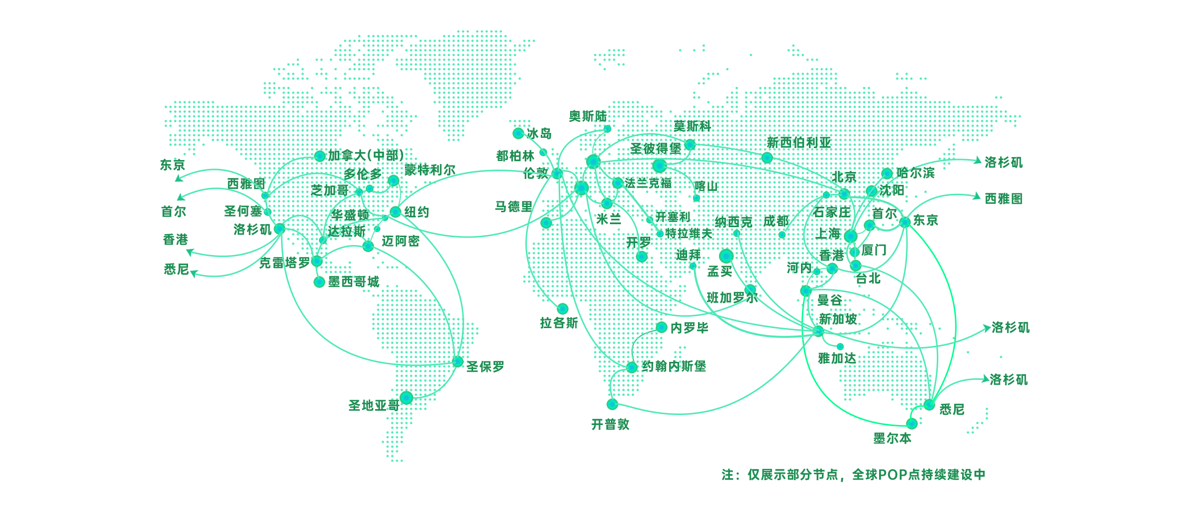 全球部署: 全球600+pop点,支持美国、东南亚、欧洲、墨西哥等地区,业务拓展有保障
