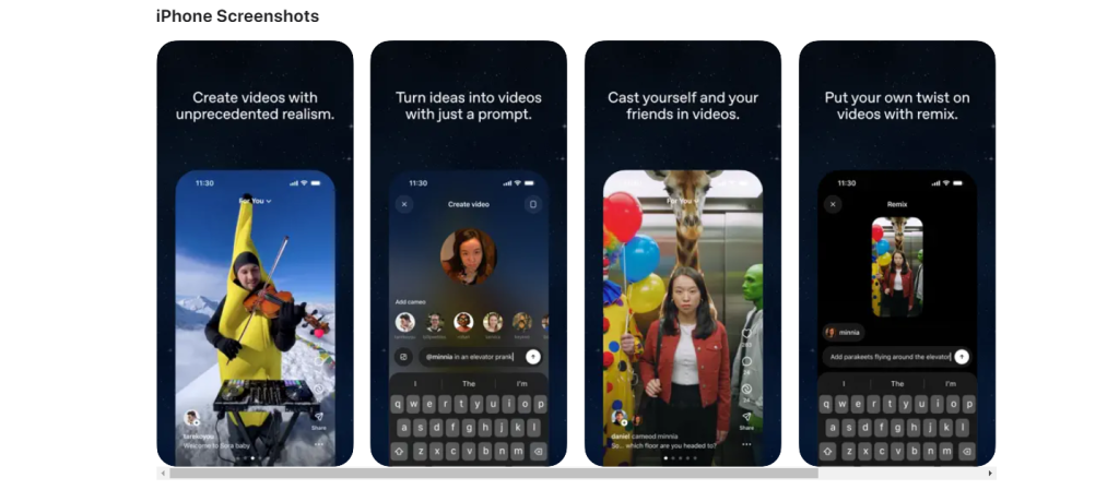 - 创新的社交功能:通过Sora App,用户可以录制一段简短的视频来创建自己的数字分身。之后,你可以将自己的这个“Cameo”形象置入任何AI生成的视频中,也可以邀请朋友的形象共同出演,实现了高度个性化的视频创作体验。
