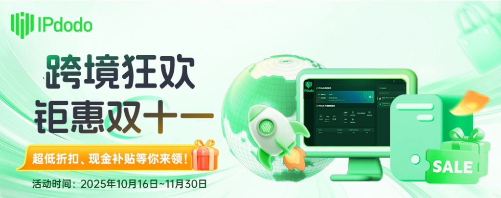 2025年10月16日—11月30日,IPdodo双11跨境网络狂欢盛典火热开启!新用户首充返现+免费试用,老用户续费折上折+时长加赠——省钱、省心、更省时间!立即点击下方按钮,锁定年度最低价,为你的跨境业务注入稳定、高速、合规的网络动力!