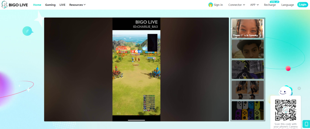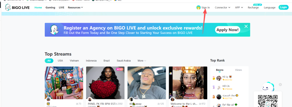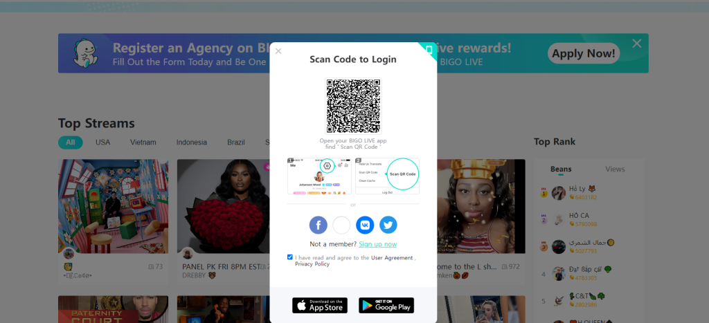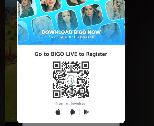 - 用你的手机Bigo进行扫码登录,或者用第三方进行登录