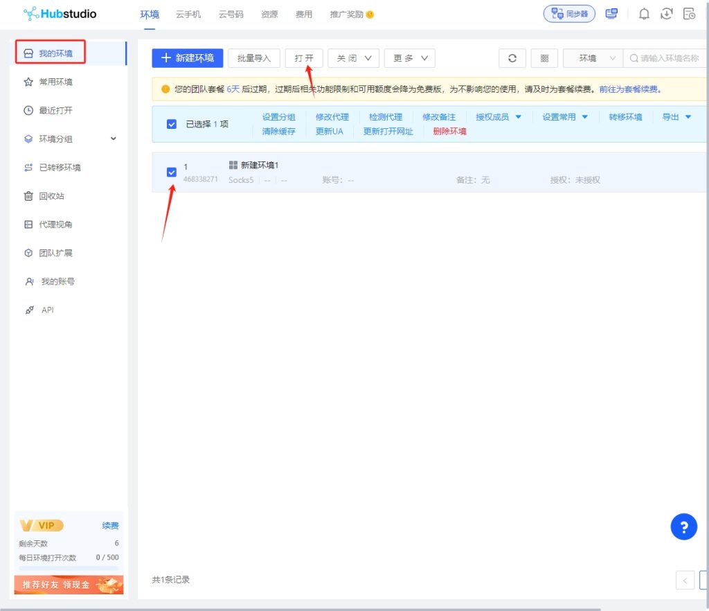 第四步,然后回到首页环境列表中,点击打开环境然后就可以使用了。