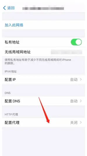 ②在iPhone(iOS)系统配置,打开【设置】,点击【无线局域网】。找到已连接的wifi,点击右侧小圆标进入配置代理界面,随后点击【配置代理】。