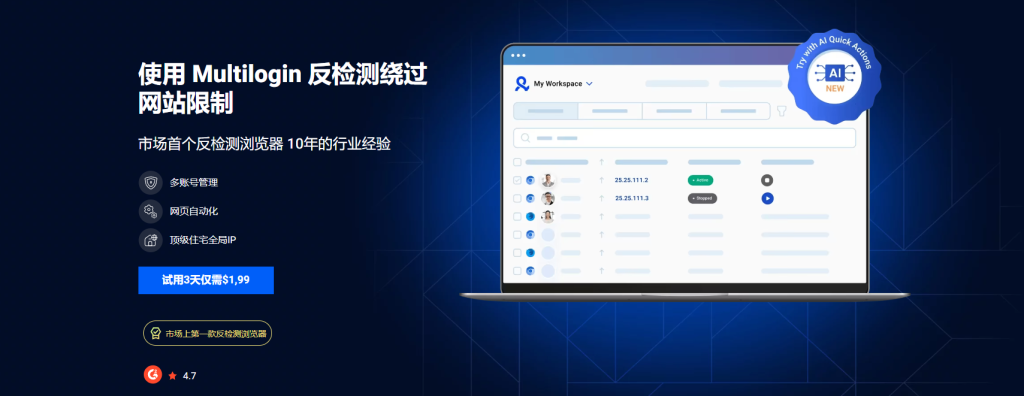 - 核心优势:专门针对社交媒体平台和广告投放优化,与多家代理服务商深度集成,操作流畅。