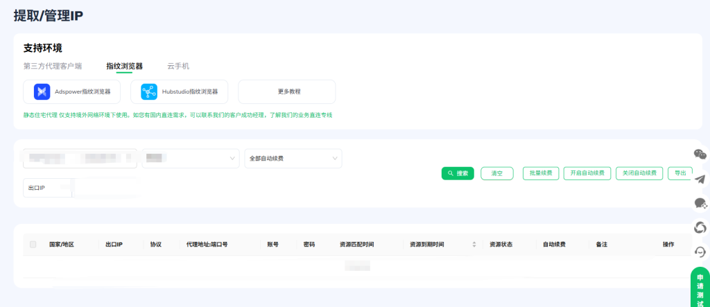 (3)随后在提取/管理IP中提取韩国IP的IP地址和端口,后面需要把IP信息配置到指纹浏览器中。