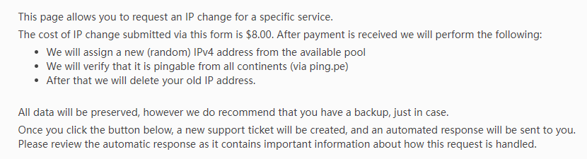 3. 点击 Request IP Change 按钮 → 进入付款页面 → 完成付款。