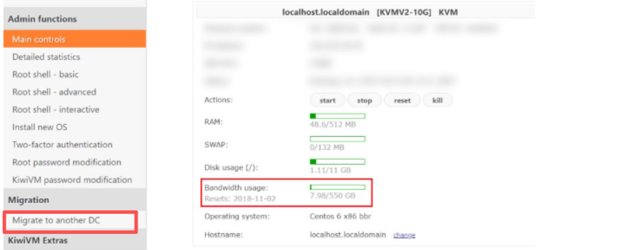 1. 进入 KiwiVM 左侧菜单,点击 “Migrate to another DC”
