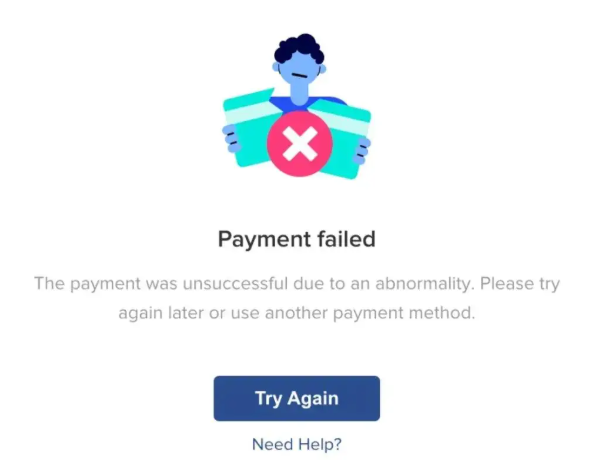 - “Payment Declined by Bank”(银行拒绝):发卡行拦截了交易。可能是因为余额不足、跨境锁或风险控制。