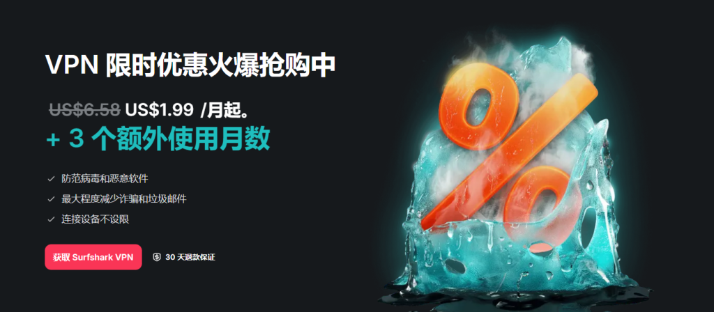 对于预算有限但希望访问TikTok的用户来说,Surfshark 提供了极高的性价比。Surfshark 的一个显著优势是它支持 无限设备同时连接,也就是说,你不仅可以在手机上使用它刷 TikTok,还可以在家庭或工作设备上同时使用,而无需担心连接数的限制。其全球服务器网络也能够有效解锁被封锁的 TikTok 内容,提供稳定的连接和较快的速度。