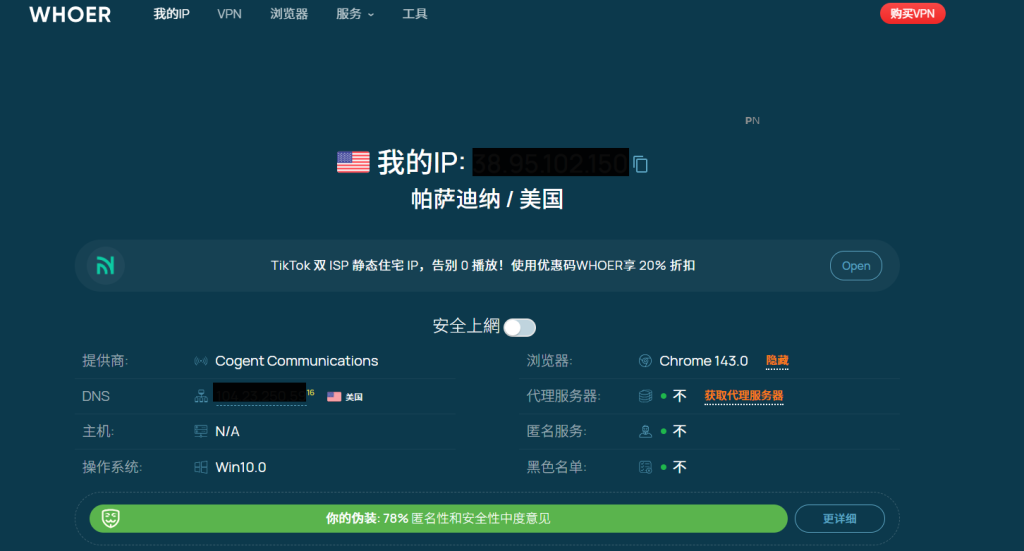Whoer.net 是跨境圈最常用的基础检测工具,适合作为IP地址风险排查的第一步。