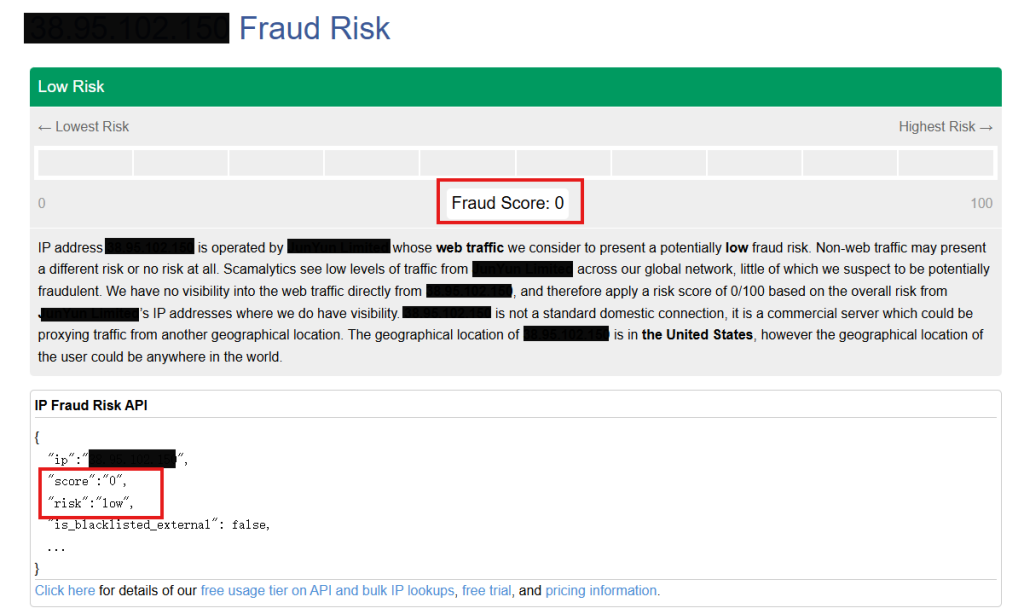 如果您从事的是高价值业务(如Facebook广告投放、PayPal养号),建议使用 IPQualityScore 进行更深度的风险IP查询。