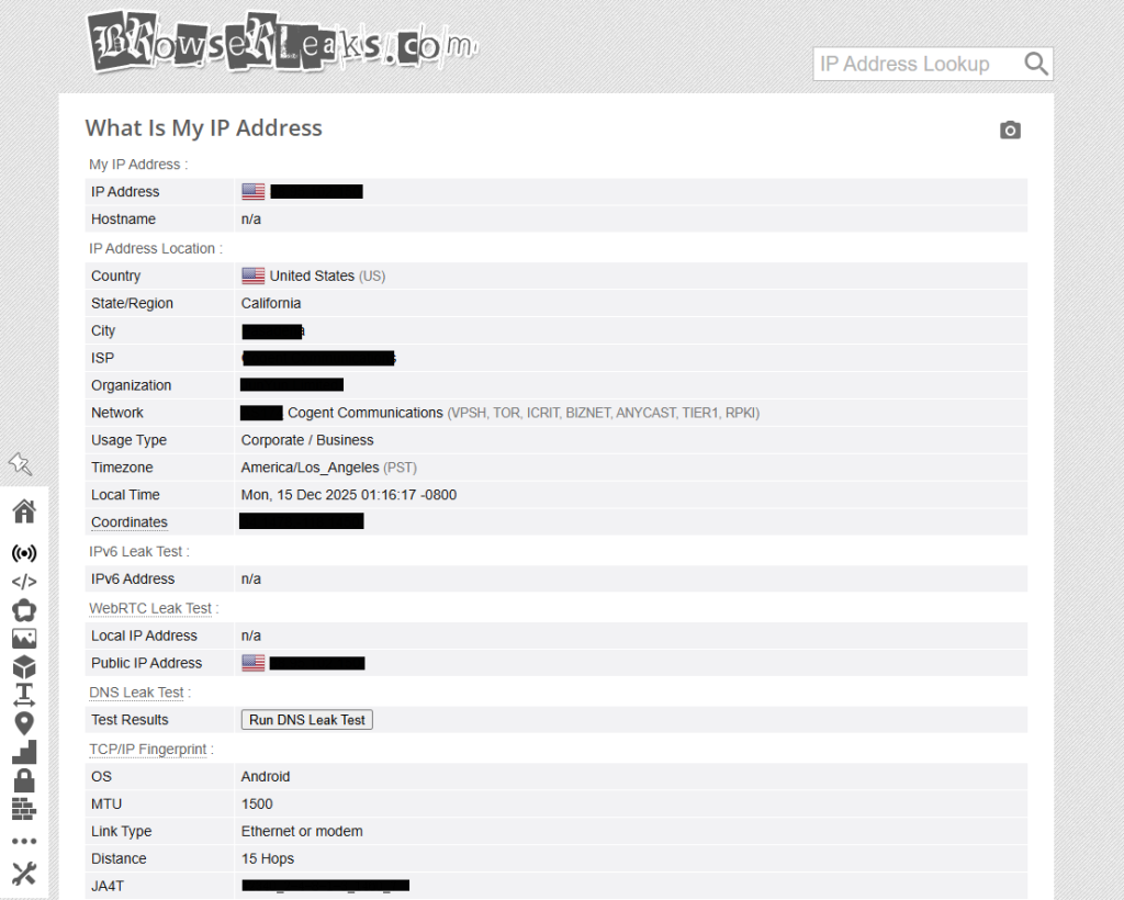 有时候IP本身没问题,但配置方式导致了泄漏。BrowserLeaks 提供了极客级别的检测能力。