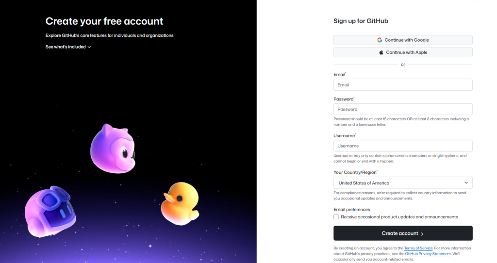 GitHub现在的注册界面非常具有科技感,采用对话框的形式。