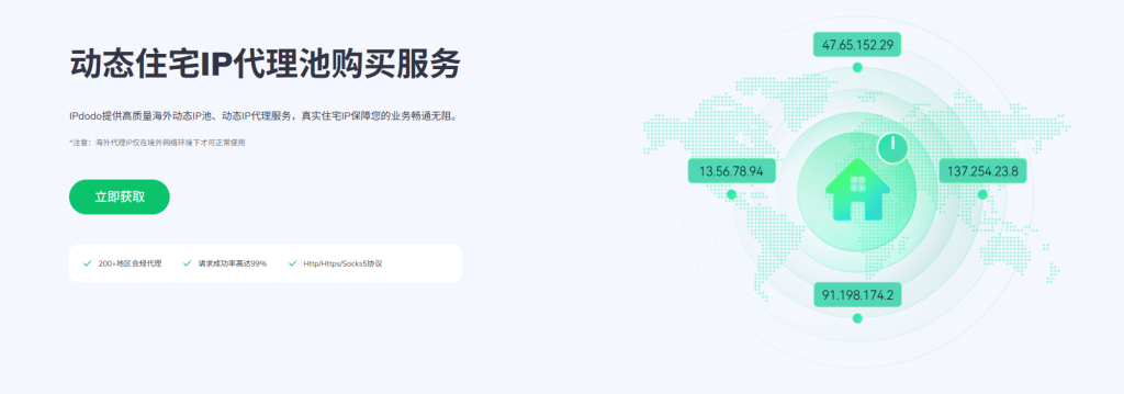 IPdodo是一个提供高速、稳定的IPv6代理服务的供应商,专注于满足个人和企业级用户的数据抓取等需求。IPdodo的代理网络覆盖广泛,支持全球多地区代理,具有高匿名性和强大的数据加密保护,适合各种互联网操作。
