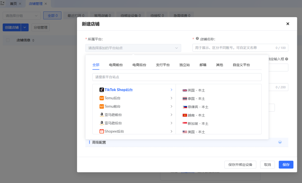 ①选择平台: 根据您的业务选择对应的平台模板,浏览器会自动匹配最适合的指纹参数。