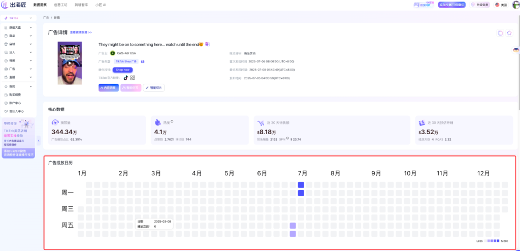 出海匠也是营销人员的灵感库。在“社交媒体”板块,您可以找到TikTok视频下载工具、Instagram红人分析工具。配合稳定网络环境,您可以流畅地进行海外社交媒体的日常运营和广告投放。