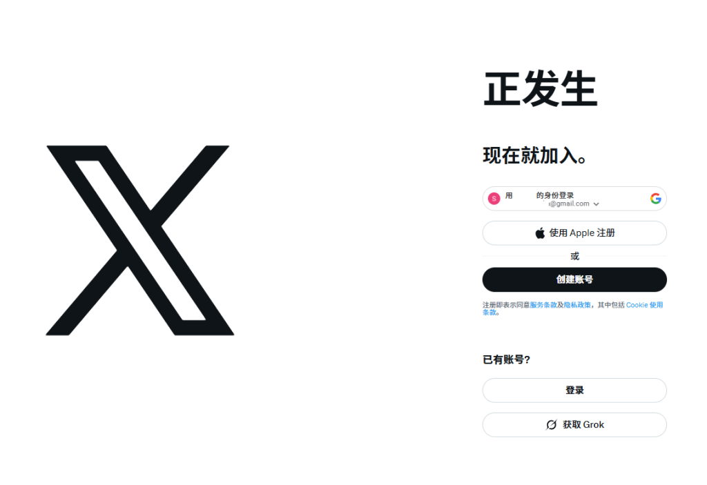 原理: 这种方式利用了谷歌和苹果的信用背书。X会认为既然谷歌已经验证过你了,那么你就是可信的,从而大概率免除手机号验证步骤。