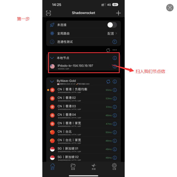 注意:导入科学上网节点至小火箭在此教程中不提供,详情可按照下面步骤操作。