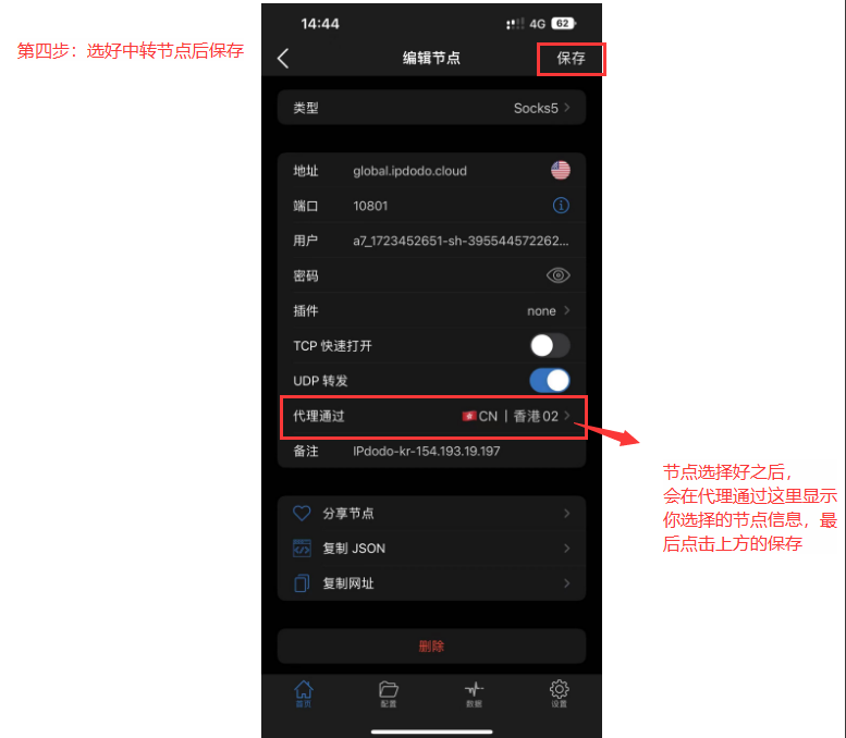 3、小火箭中还需要配置一条可科学上网的节点