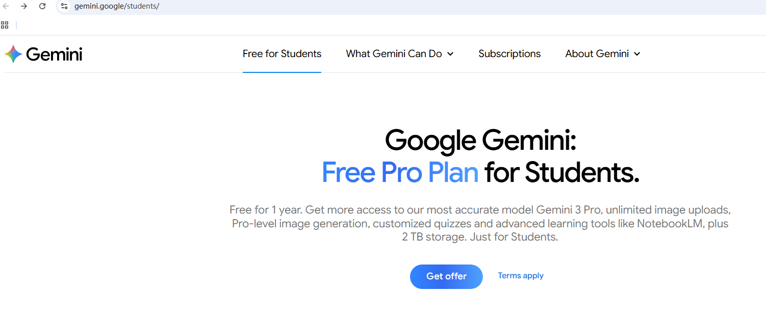 2025年,Google 正式推出了针对 Gemini 的学生优惠计划,只要通过认证,即可免费获得长达 12 个月的 Google AI Pro会员资格,同时附赠 2TB 的 Google One 云存储空间。对于需要使用 AI 辅助写论文、润色代码或进行深度研究的学生党来说,无疑是年度最强福利。